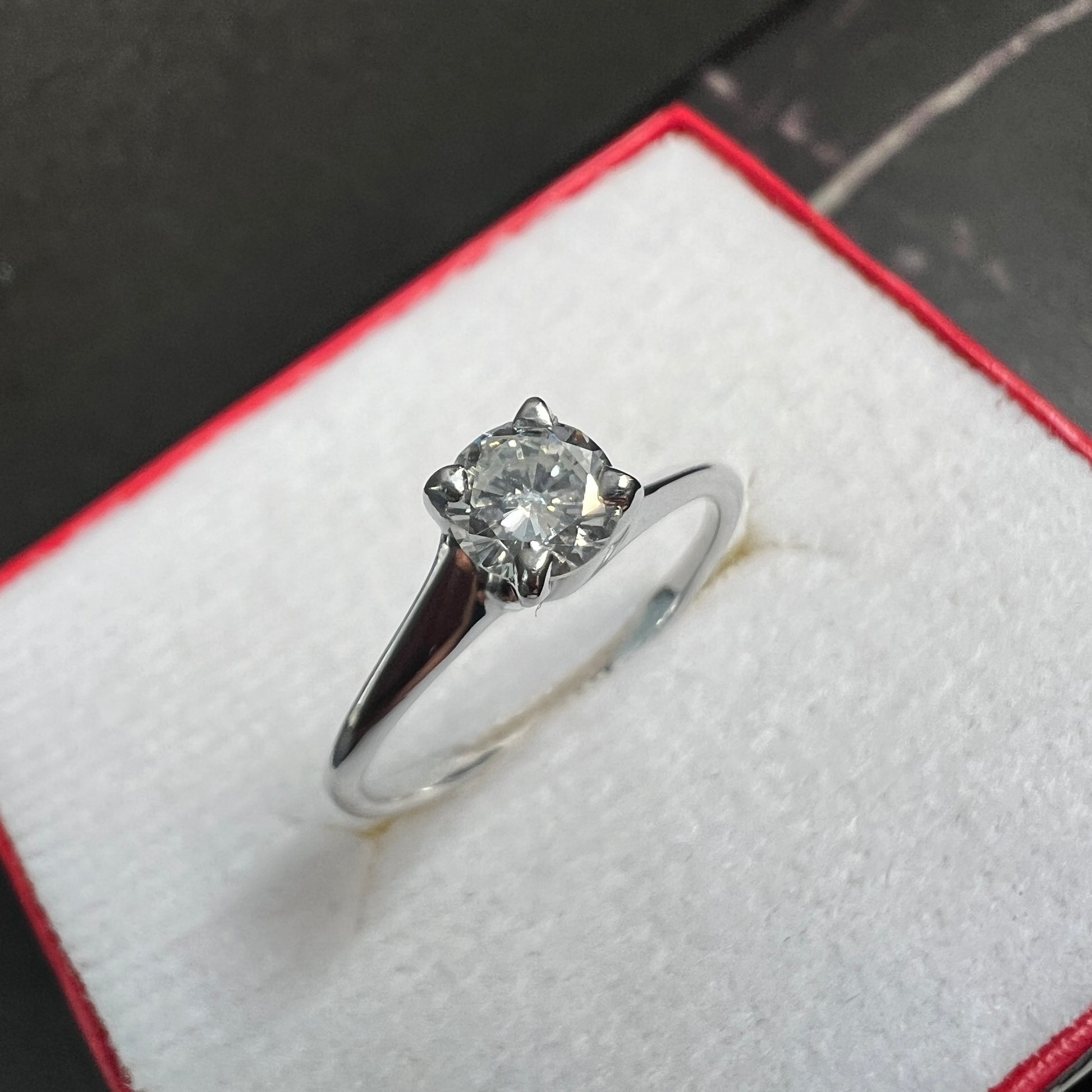 Anillo de Compromiso, fabricado de oro blanco de 14k, con un Diamante Natural corte brillante de 0.37ct (37 puntos).