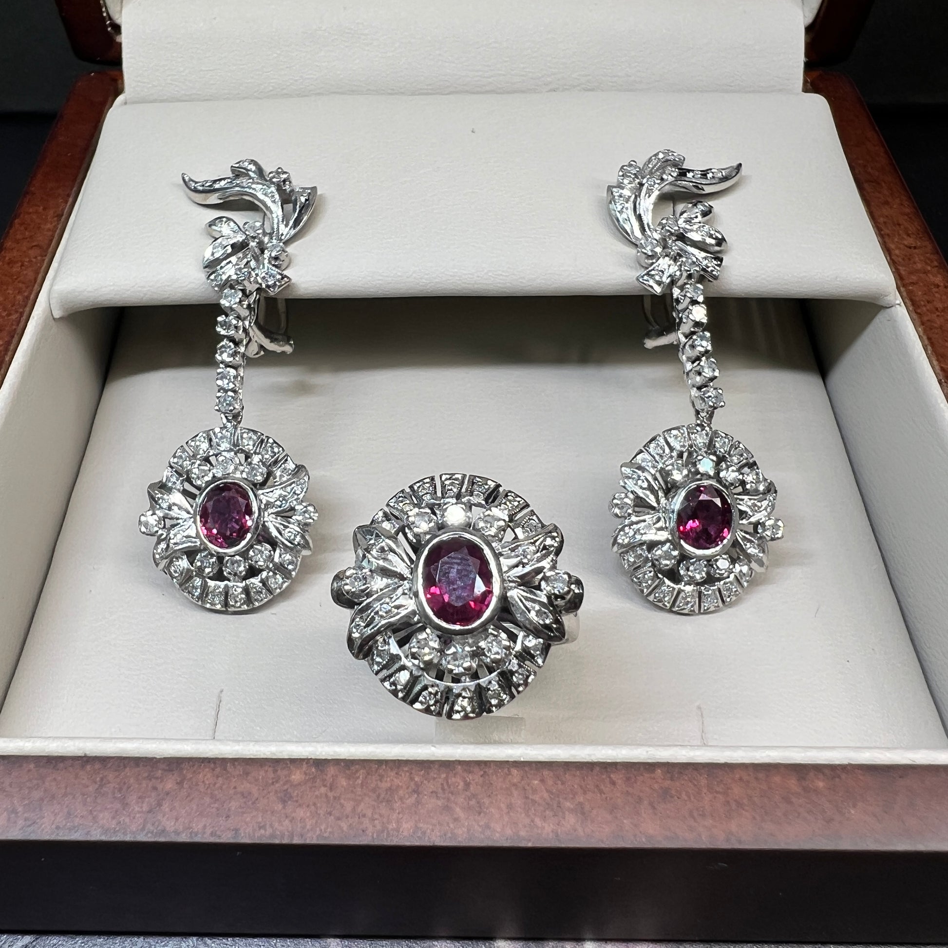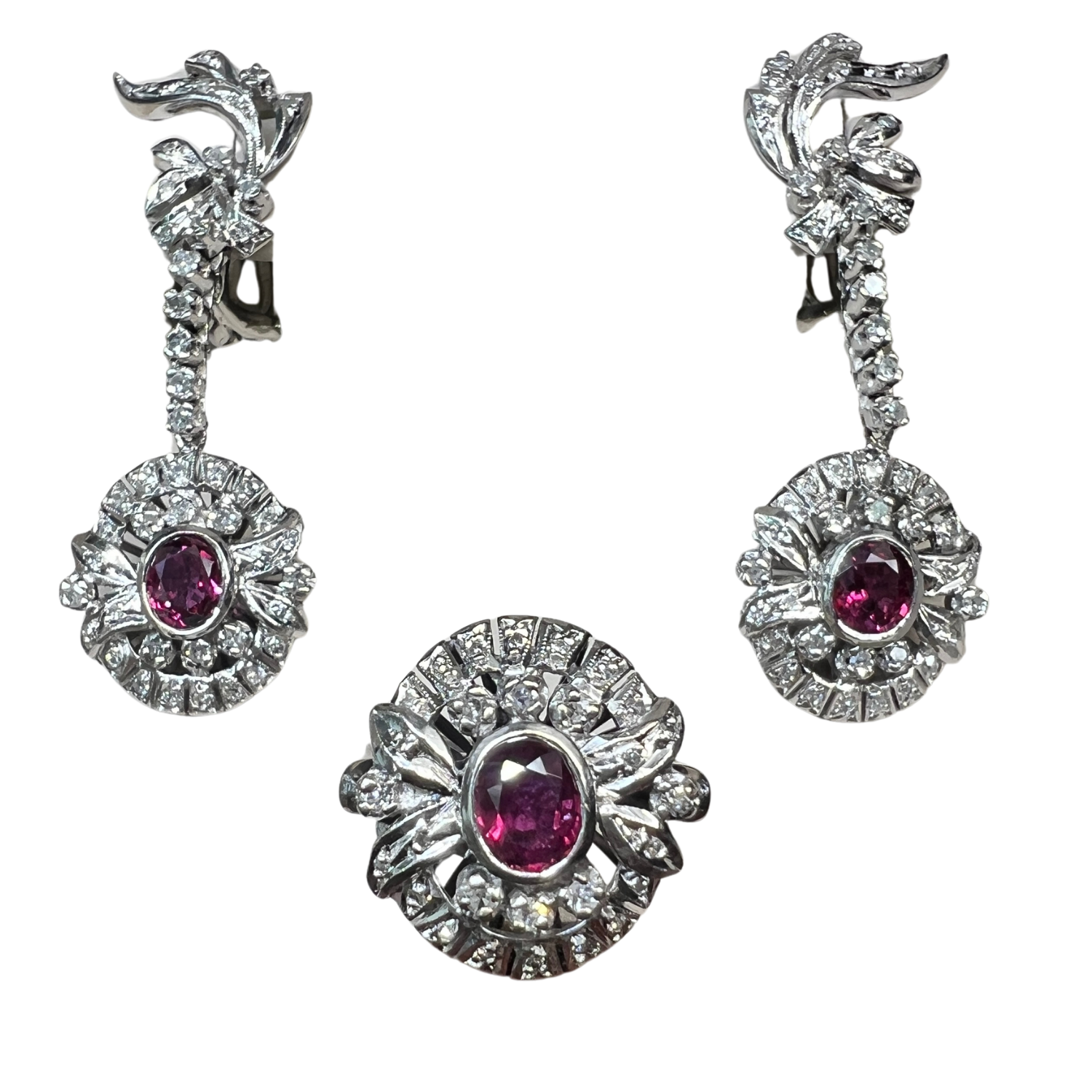 Joya: Juego de Anillo y Aretes de Plata Paladio con Rubíes y Diamantes Naturales 1.68ct